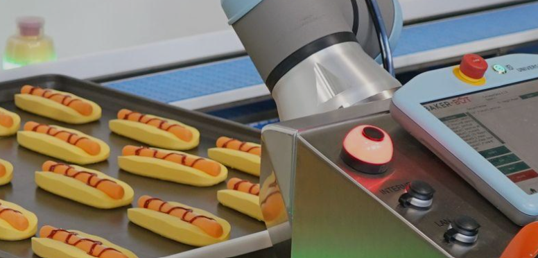 Collaborative robots, automation, and robotic equipment designed to support bakery, food, dairy, and pharmaceutical production facilities in addressing labor shortages, improving efficiency and consistency, reducing production costs, and achieving production targets.