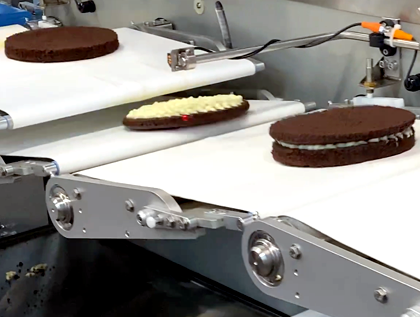 Custom specialty conveyors engineered for cake layering, reciprocating motion, oven infeed/outfeed, and tailored applications.